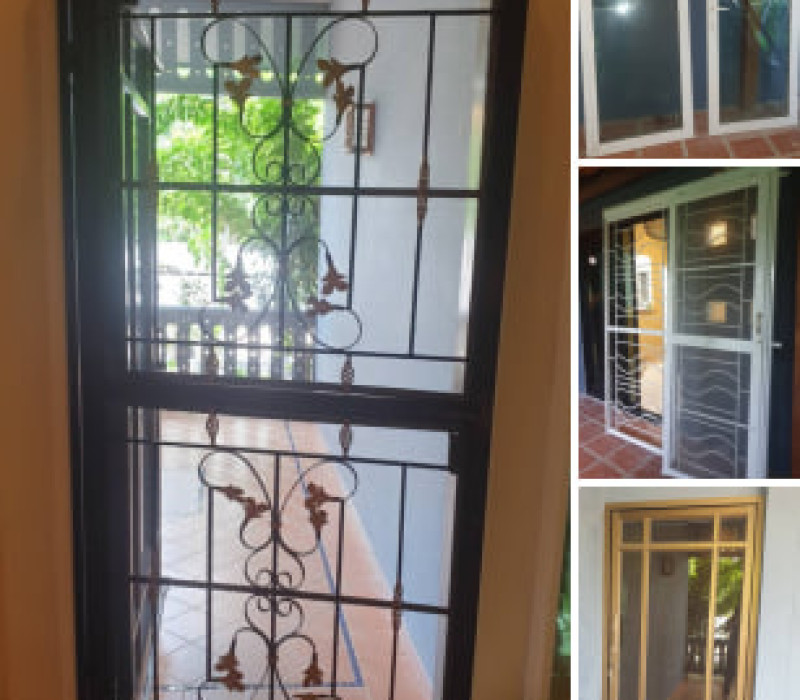 ประตูกระจกบานเลื่อนพร้อมเหล็กดัดมุ้งลวด รวม4บาน 5900
