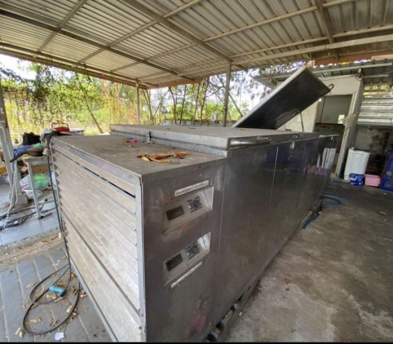 ตู้แช่แฝดเปิดได้ 2 ด้าน สแตนเลสทั้งใบ ขนาดกว้าง 1.2 เมตร สูง 1.2 เมตร(ต่อช่อง) บรรจุได้ 1,000 กิโล ฝั่งละ 500 กิโล ไม่ใช้ฝั่งไหนปิดได้ มีปุ่มควบคุมราคา 24,900 บาท